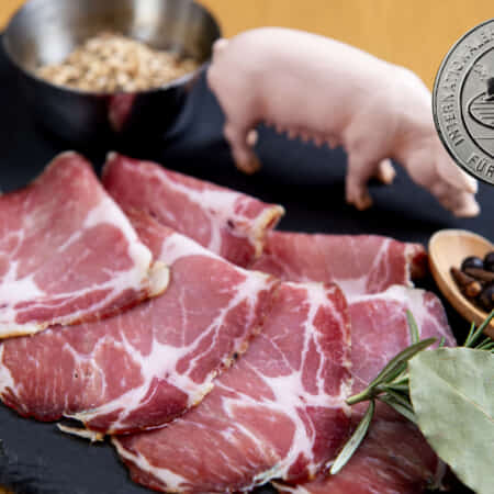 今回は、対馬産の猪肉を使用。キャラウェイシードとパプリカ、赤ワインで煮込む南チロルの定番料理を、急速冷凍・真空包装しました。