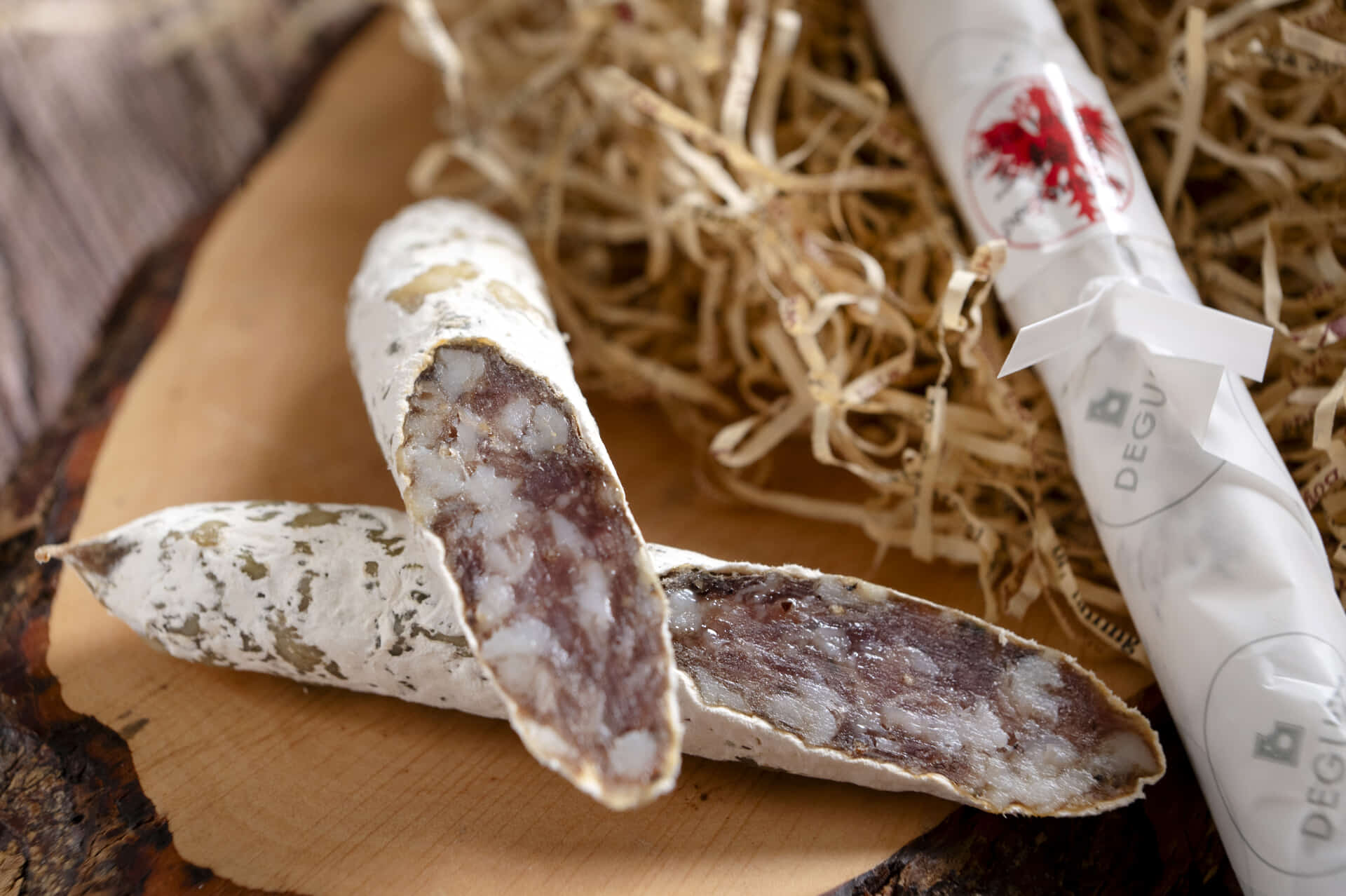 約1か月熟成の「白カビサラミ」、国産の豚肉で作ったしっとり食感の細い「ソフトサラミ」ガーリック風味。